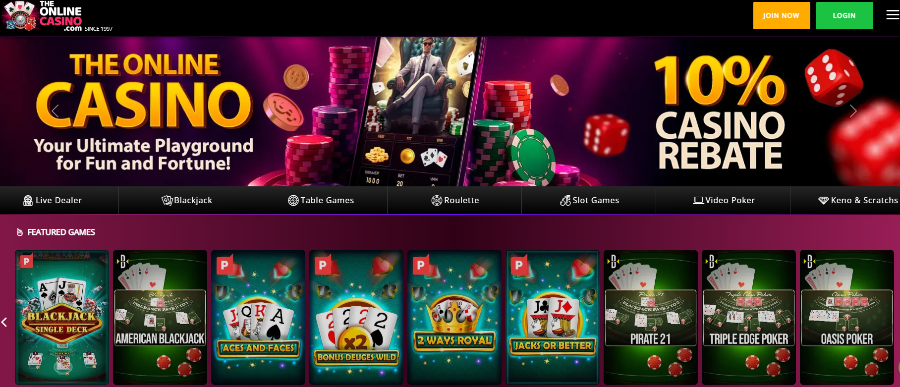 TheOnlineCasino400% deposit bonus up to $1,000Casino + live dealer + sportsbook under one wallet$10