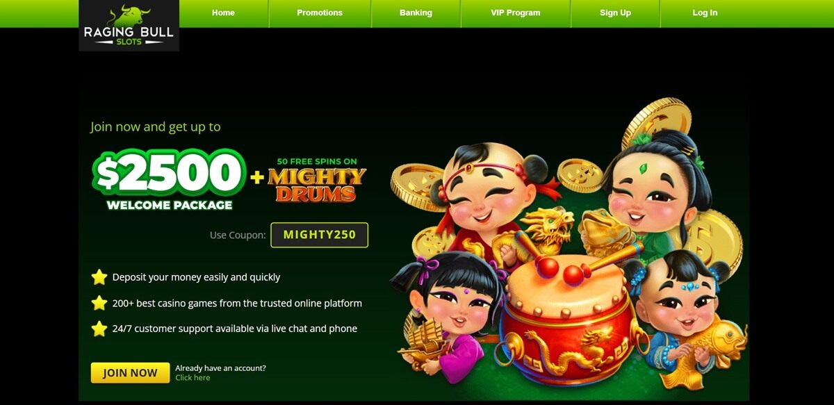 Raging Bull250% welcome bonus + ongoing reloadsBonus-heavy platform built for long Florida slot sessions$10